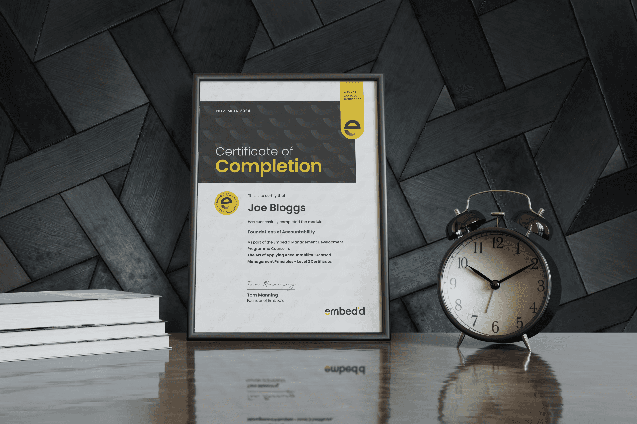You know what it's like with traditional management development, people can turn up, have a nice lunch and if they want to…….go right back to what they did before. With Skill Verification we ensure there is at least some verification of skill. We provide their line manager with a short template to complete and to confirm skill verification before anyone passes the course! That little bit of accountability can make all the difference.